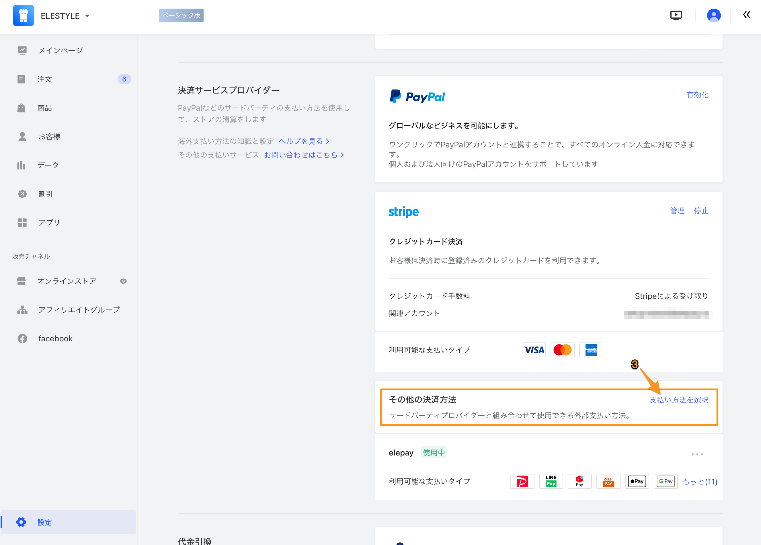 - 決済サービスプロバイダー一覧から、「elepay」をクリックしてください。