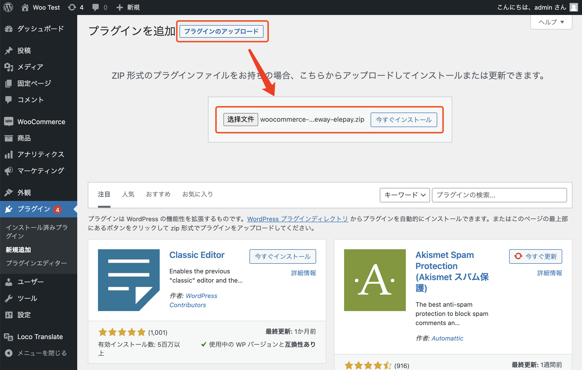 elepay for WooCommerce pluginのインストール方法を紹介します。