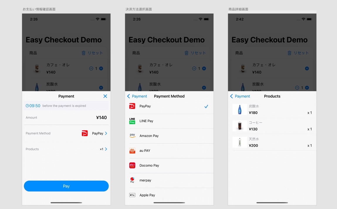決済方法のイメージは下のスクリーンショットにて確認できます。ダークモードにも対応しています。