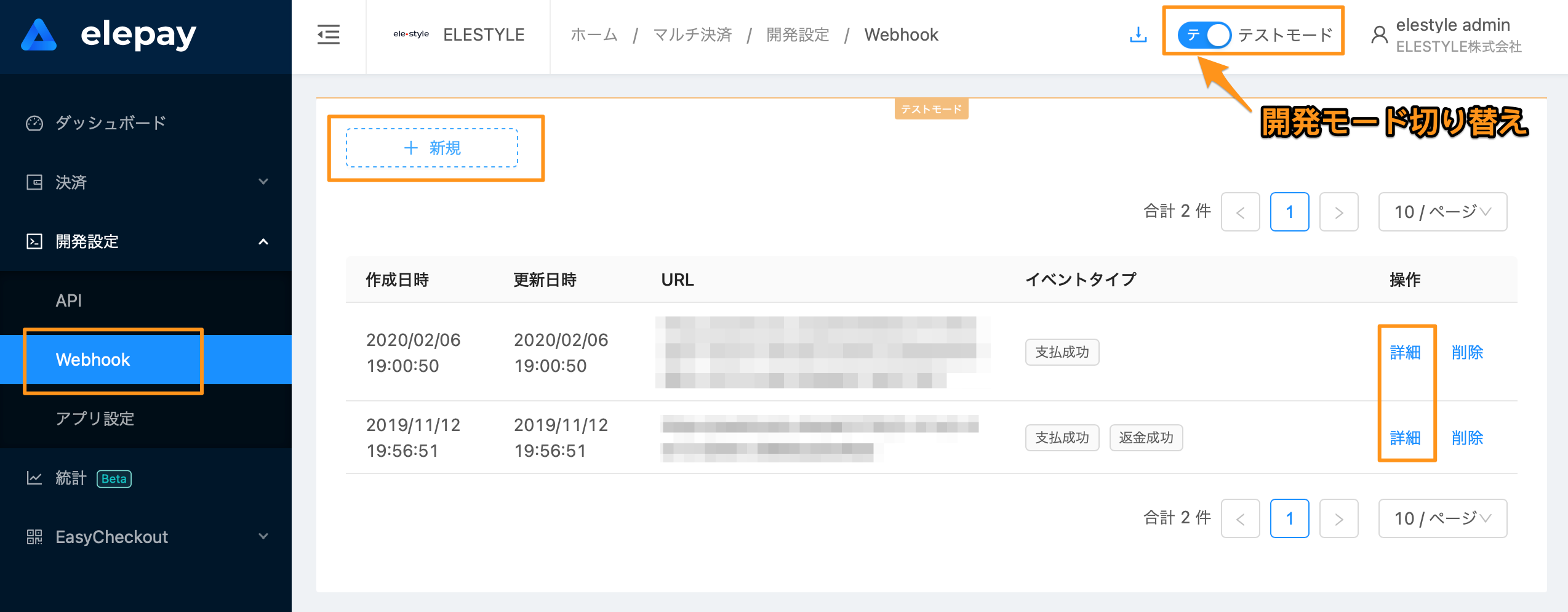お客様のシステムと連携するために、elepay は開発者に非同期通知を処理する Webhook および関連ツールを提供しています。