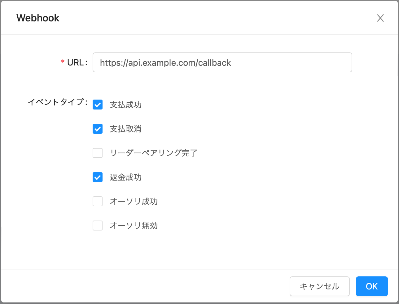elepay の管理画面から送信先 URL を追加するだけで、上記のようなイベントが自動的に通知されるようになります。